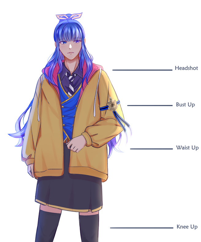 Please give me reference (pose, expression, accessories, outfit, color, etc)